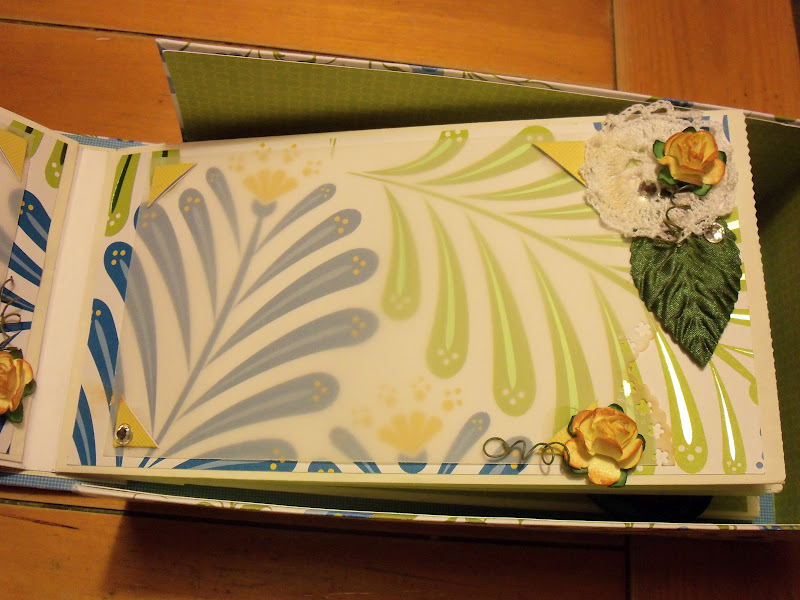 A lot of pictures I know but I do like how it came out. I wasn't sure about it because I normally wouldn't have used this style of paper but my recipient loves greens and blues and when I saw the paper I thought it was perfect for her.